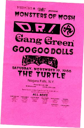 The Turtle - Nov 19, 1988 Riviera Theatre - Dec 10, 1988 Connecticut St. Armory - Oct 2, 1993 Network - December 8, 1994 Blind Mellons - Dec 31, 1994 Blind Mellons - May 6, 1995 University of Rochester - Oct 7, 1995 Sheas Theatre - Nov 11, 1995